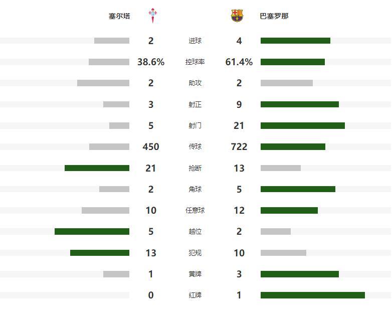 在稍早结束的一场比赛中,领头羊皇家马德里在客场被苦主巴列卡诺逼平。随着本场比赛巴萨拿下塞尔塔,他们与银河战舰的积分差距缩小到了只有3分,仍然有着逆转卫冕的希望。