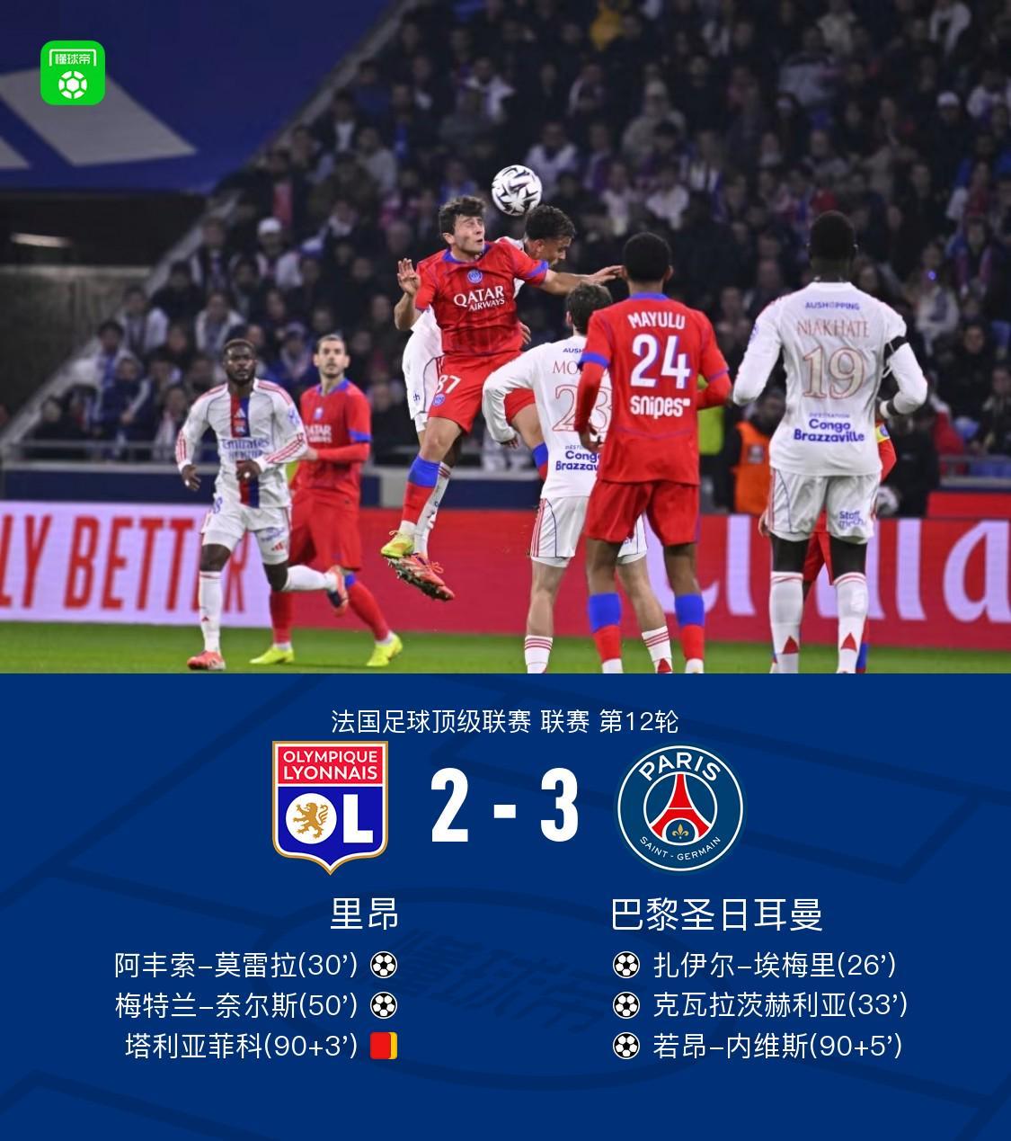 北京时间11月10日凌晨,法国足球顶级联赛第12轮迎来焦点对决,里昂坐镇主场迎战巴黎圣日耳曼。这场跌宕起伏的进球大战最终以巴黎3-2客场告捷收尾,埃梅里、KK、内维斯三名球员为巴黎建功,莫雷拉与奈尔斯则为里昂攻入两球,补时阶段内维斯的头球绝杀成为全场制胜点。