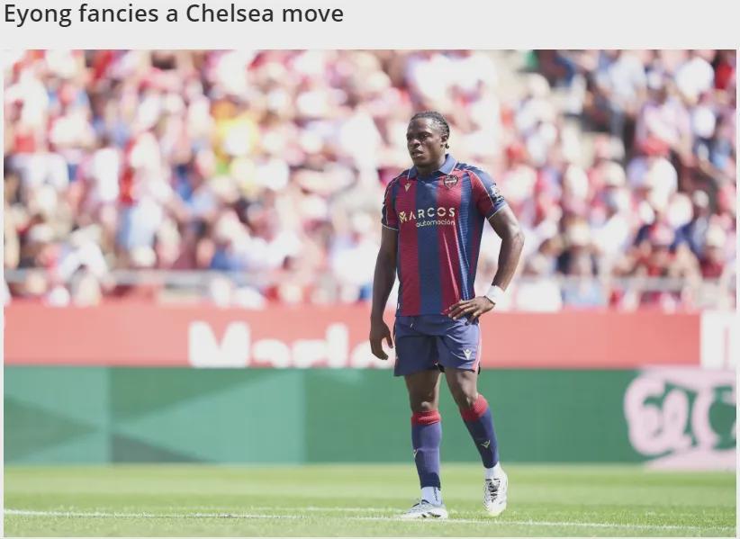“切尔西经常签约出色的非洲球员,而英格兰有很多大俱乐部,不过说到加盟切尔西,为什么不呢?为蓝军效力对我来说将是梦想成真。”埃永本赛季已经在12场西甲比赛中贡献6球3助攻,喀麦隆人的合同直到2029年才到期,据悉皇马和巴萨也在关注他。