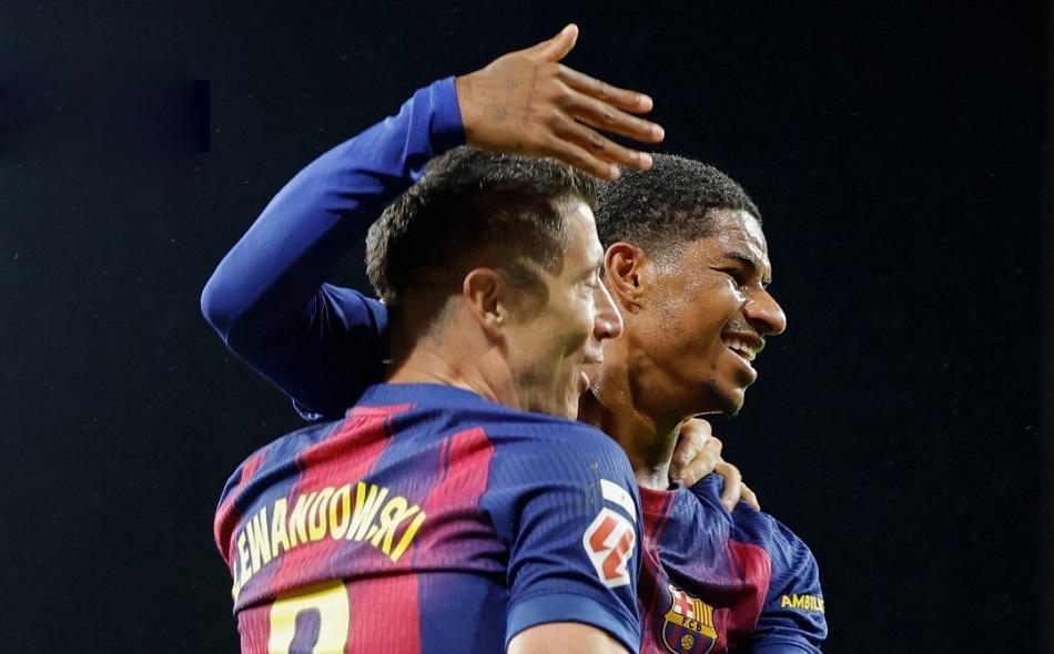 第24分钟,亚马尔前场抢断,巴塞罗那迅速组织起一波强有力的攻势。费尔明推射被挡出,拉什福德补射击中立柱弹出,莱万再射又被门将扑出。第37分钟,比分再次被改写,拉什福德一个简单的边路传中,莱万插上推射破门,1-2!巴塞罗那再次将比分超出。