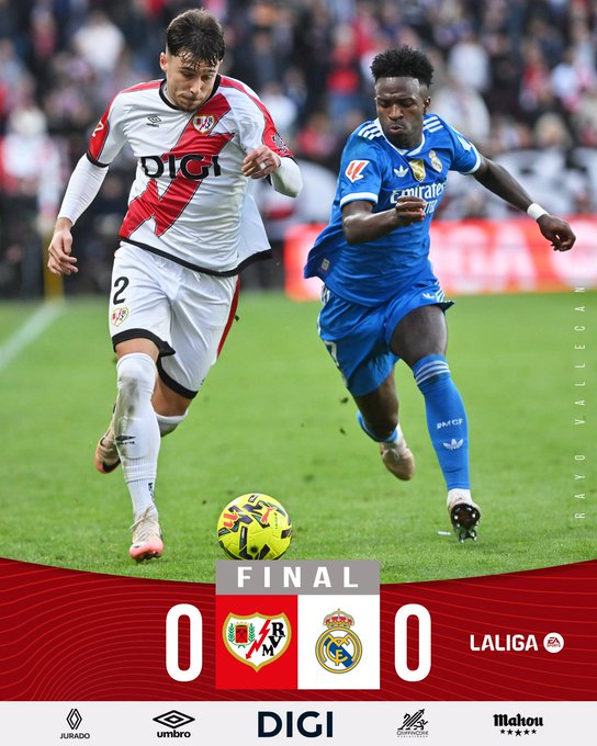 北京时间11月9日23:15,西甲联赛第12轮,巴列卡诺主场迎战皇马。上半场,维尼修斯、劳尔-阿森西奥接连错失良机,双方暂0-0战平。下半场,两队均未能改写比分,最终皇马0-0战平巴列卡诺,联赛四连胜就此终结。