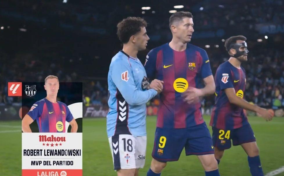 官方消息,在西甲第12轮塞尔塔对阵巴塞罗那的焦点战役中,波兰前锋莱万多夫斯基凭借惊艳表现当选全场最佳球员。