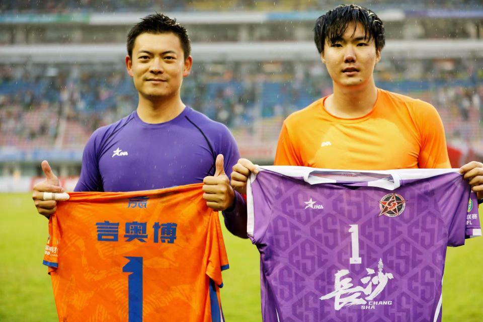 更令人瞩目的是,赛场另一端的长沙队1号门将邓子豪,正是言奥博的昔日恩师。这场师徒同场竞技的对决,随着赛后二人交换球衣的温情瞬间,成为了本轮湘超的一大亮点。