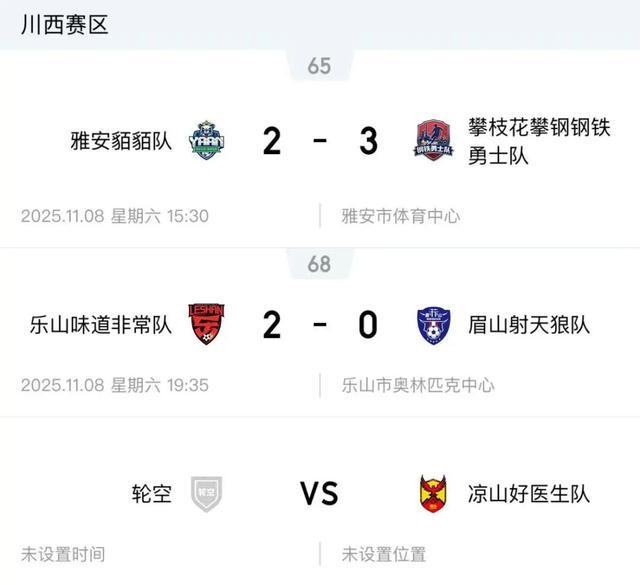 11月8日,2025/2026四川银行四川省城市足球联赛第八轮开战。雅安貊貊队坐镇主场,迎战老对手攀枝花攀钢钢铁勇士队。全场比赛结束,攀枝花队在客场以3:2的比分击败雅安队。