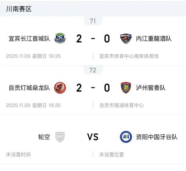 11月9日,2025/2026四川银行四川省城市足球联赛第八轮川南赛区,宜宾长江首城队主场迎战内江重龍酒队。本场比赛开赛前,两队同积8分,都有出线希望,但内江队多赛一场,要想出线,必须取胜。