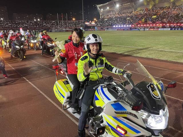比赛开始前,“跳水女皇”高敏和自贡“网红交警”陈俊带领铁骑队绕行体育场,为比赛增添了别样的色彩。