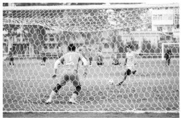 在少打一人的不利情况下,北京市服务工会代表队展现出了顽强的斗志,他们严防死守,一直坚持到了比赛的最后时刻。就在比赛即将结束时,朝阳区总工会代表队右路传中,9号韩伟辰高高跃起,用一记“泰山压顶”的头球将比分扳平,将比赛拖入了点球大战。