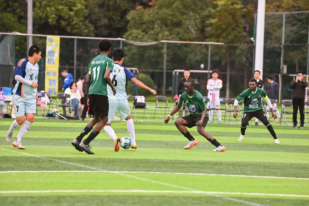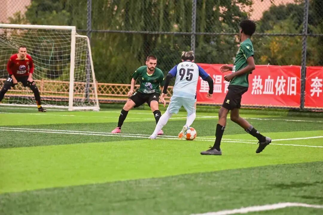 下午2点,由外国友人组成的城市男孩足球队与东北长白虎队展开激烈较量。
