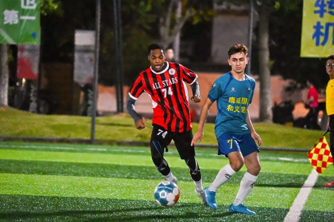 下半场新疆天山青年队以一记头球反超比分,国际全明星队不甘落后,在终场前2分钟强势破门扳平比分,最终两队以2:2握手言和。