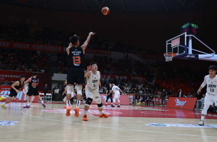 下半场易边再战,永康队延续火热手感。施泽政在黄盛翀助攻下命中三分实现比分逆转,双方进入拉锯战。第三节中段,绍兴队再度发力将分差拉大至11分,危急时刻金倍司重新登场。他先是打成“2+1”稳定军心,又在本节最后时刻投进超远压哨三分,将分差缩小至7分,为末节决战埋下伏笔。