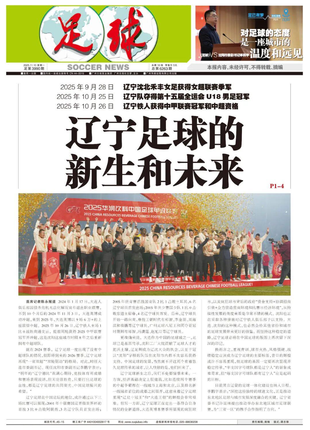 特约撰稿/沈君11月8日,中甲收官战,辽宁铁人队捧起冠军奖杯,继大连英博去年升入中超后,辽宁足球迎来了第二支中超球队。不久前,辽宁U18男足在第十五届全运会上点球大战力克劲旅山东队,时隔12年再度摘得该项目金牌;首次征战女超联赛的辽宁女足获得季军,险些创造中国足坛的“凯泽斯劳滕神话”。