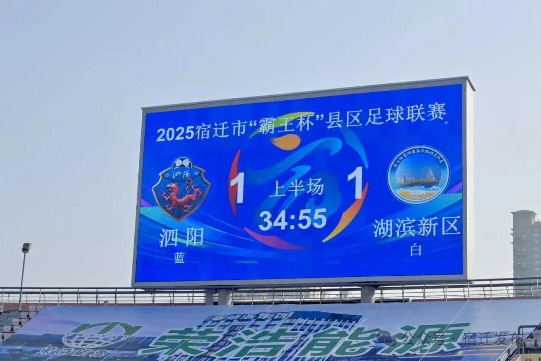之后泗阳队攻势加大,第34分钟,泗阳队22号球员汤智恒通过点球进球,迅速扳平比分。