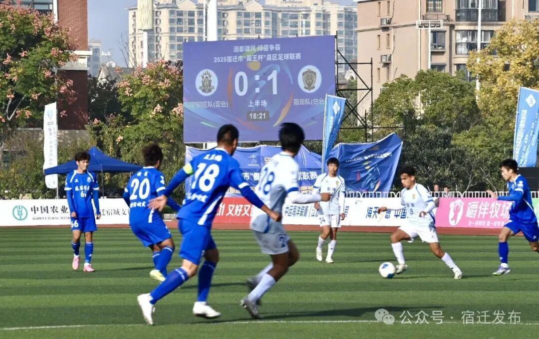 比赛第18分钟,宿城队32号球员耿鑫抓住任意球机会,一脚精准“世界波”直挂网窝,帮助球队率先破门,比分为0:1,宿城队半场取得领先。