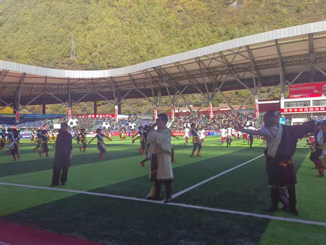 除了赛场上的热血与温情,这场比赛还带来了诸多专属惊喜。特色文艺演出贯穿始终,既有活力四射的表演拉开赛事序幕,又在中场休息时带来别样精彩。值得一提的是,三十余载驰骋在平均海拔3500米的雪线邮路,累计安全行驶140多万公里的“时代楷模”其美多吉,以及从色达县牧民家庭走出、因热爱足球加入“色达红星女子足球队”并成长为球队队长的仁青吉,共同担任了本场比赛的开球员,为比赛增添了别样的光彩。当天恰逢色达县建县70周年,这份特殊的组合也为这一重要时刻增色不少。
