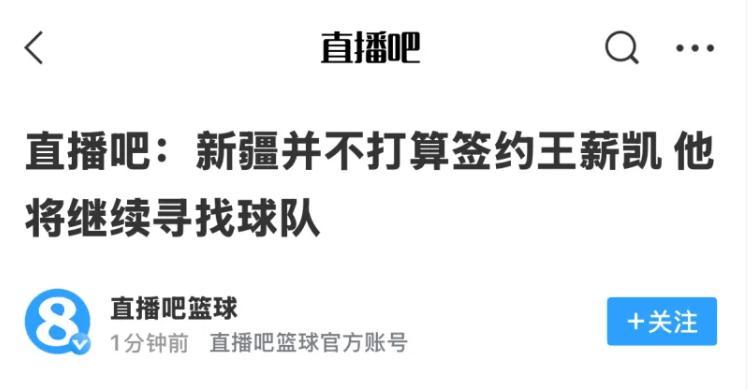 新疆男篮虽未能在全运会打入决赛阶段,却因此获得了更充裕的新赛季备战时间。据最新消息,球队已签下的四名外援中,劳森、纳托尔和路易斯-金均已到队,仅新援泰隆-华莱士尚需数日方可汇合。然而国内知名媒体直播吧透露,王薪凯在新疆男篮长达两个月的试训未能换来签约合同,这位前广东男篮三冠锋线或将面临告别CBA的窘境。