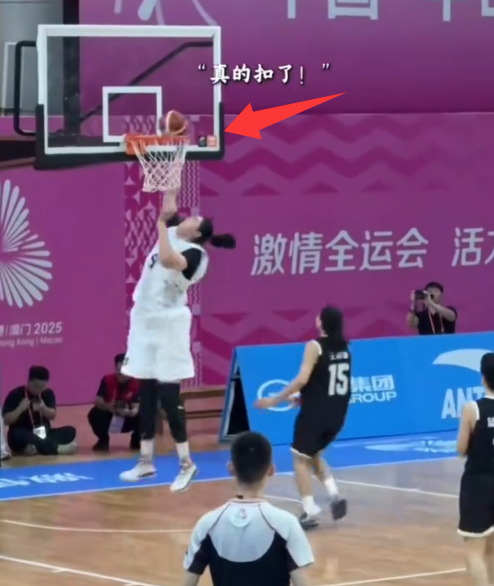 无人防守的张子宇轻松接球,随即高高跃起,用右手完成了一次霸气十足的单手扣篮。这一扣,不仅让现场观众沸腾,更让中国篮球的历史就此改写——张子宇成为中国女篮历史上首位在实战比赛中完成扣篮的球员。