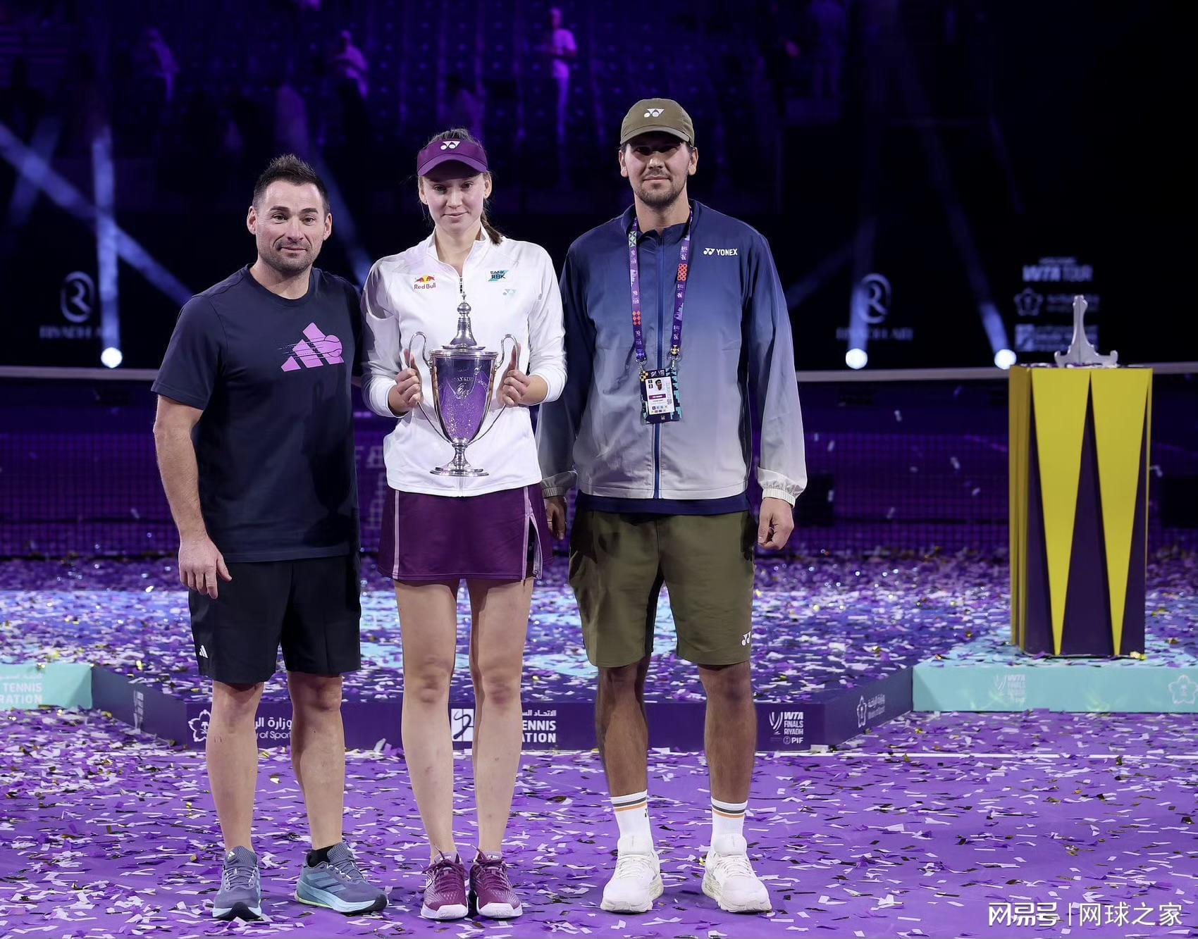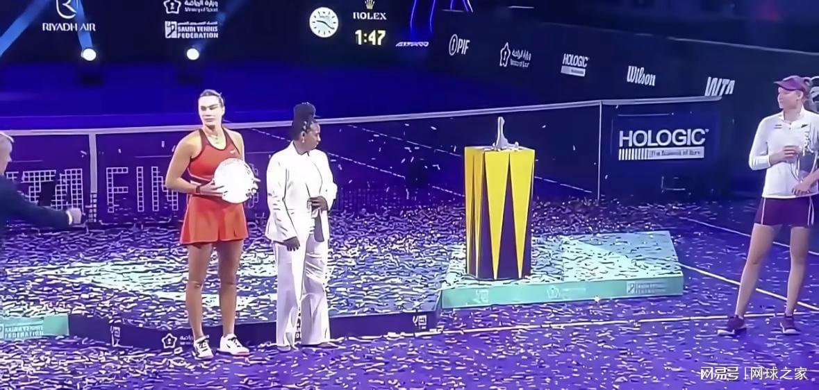 就在几分钟前,莱巴金娜刚刚完成了职业生涯的里程碑式胜利。面对世界排名第一的萨巴伦卡,她以6-3、7-6(0)的比分强势夺冠,尤其在第二盘挽救两个盘点后,抢七局更是以零封对手的惊人表现锁定胜局。这场胜利不仅让她成为WTA年终总决赛新科冠军,更以赛季11连胜的战绩重返世界前五,书写了完美的冠军篇章。