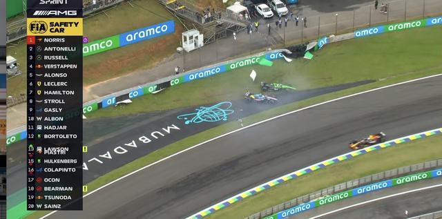 北京时间11月8日,F1巴西站冲刺赛在激烈角逐中落下帷幕。诺里斯凭借出色的发挥,杆位发车并一路领跑,最终夺得冠军。安东内利表现同样抢眼,紧随诺里斯之后冲线,获得亚军。拉塞尔则以稳定的发挥,成功跻身前三,获得季军。维斯塔潘、勒克莱尔分别位列第四、第五,阿隆索、汉密尔顿、加斯利等车手也均有不俗表现。然而,比赛中也发生了意外,皮亚斯特里和科拉平托因事故遗憾退赛。