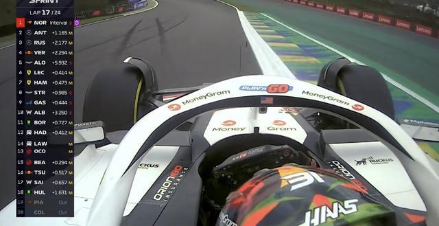 第15圈,前方车手逐渐带开差距,阿隆索无法匹配前方维斯塔潘的节奏,成为积分区最后几个位置的火车头。