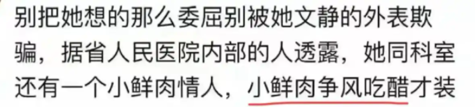 此外,眼科副主任还被爆出在医院同时交往多位情人,而副院长只是其中之一,她还和一个“小鲜肉”保持着交往关系。