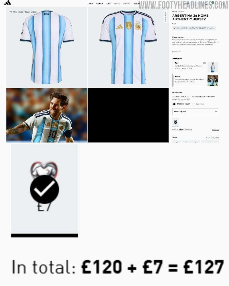 近日,据足球装备权威网站Footyheadlines消息,有网友近日在阿迪达斯官网购买了阿根廷国家队2026年主场球衣,但他收到包裹以后发现, 球衣上的臂章却是欧足联欧预赛的臂章“心之所向(Play with Heart)”。