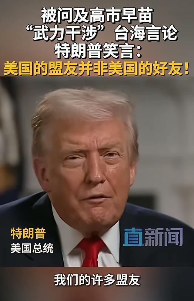 而除了日本国内之外,这次就连特朗普也不打算向着日本说话了。在近期的访谈中,特朗普就回应了高市早苗提到的涉及到中国台海的相关问题。