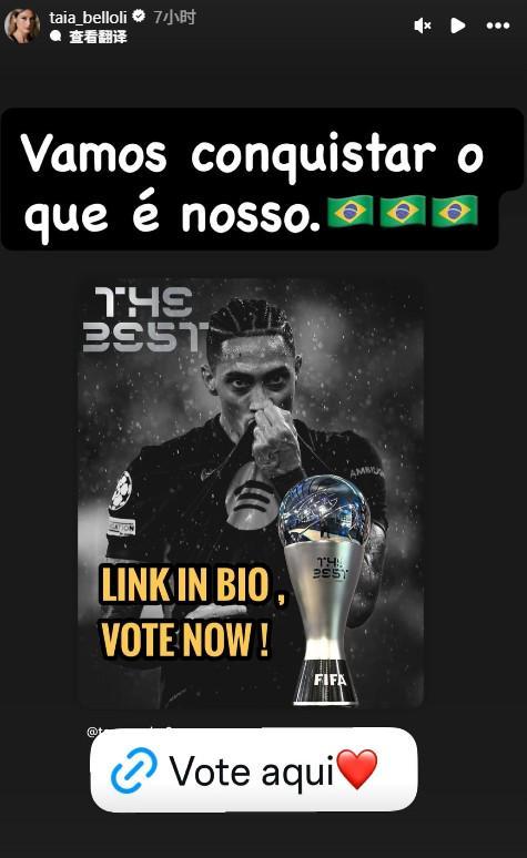 北京时间11月7日凌晨,国际足联官方公布了2025FIFA年度最佳球员的候选名单,其中拉菲尼亚在列,随后,他的妻子Natalia Rodrigues Belloli在社交媒体上发表动态,向球员表示支持。