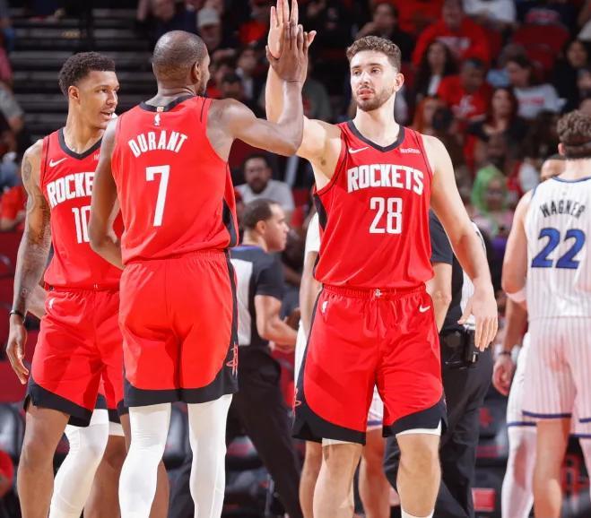 对于杜兰特而言,火箭确实带来了久违的夺冠希望。自2019年离开勇士后,他先后效力篮网和太阳,但始终未能突破季后赛次轮。而本赛季的火箭不仅拥有杜兰特+申京的超级双核,替补席上还坐着汤普森、史密斯、亚当斯等实力悍将。数据显示,火箭目前场均助攻数联盟第三,防守效率高居第五,团队篮球的打法让杜兰特打得更加轻松高效。