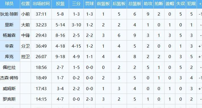 团队其他球员也有不俗表现,库克拿到了23分8篮板2抢断,里斯砍下15分4篮板,辛森拿到了14分5篮板,琼斯则贡献了12分6篮板9助攻2抢断。