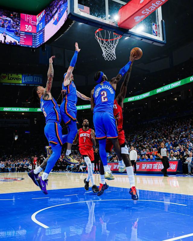 本赛季的雷霆队,依然是全联盟防守最好的球队之一,他们擅长包夹和拼抢,抢断和利用失误得分均位列联盟第一,同时失误数却排在联盟第29。雷霆队既能疯狂造成对手失误,又能很好地控制自身失误,一旦让他们抓住机会打反击,往往就是一波流带走比赛。