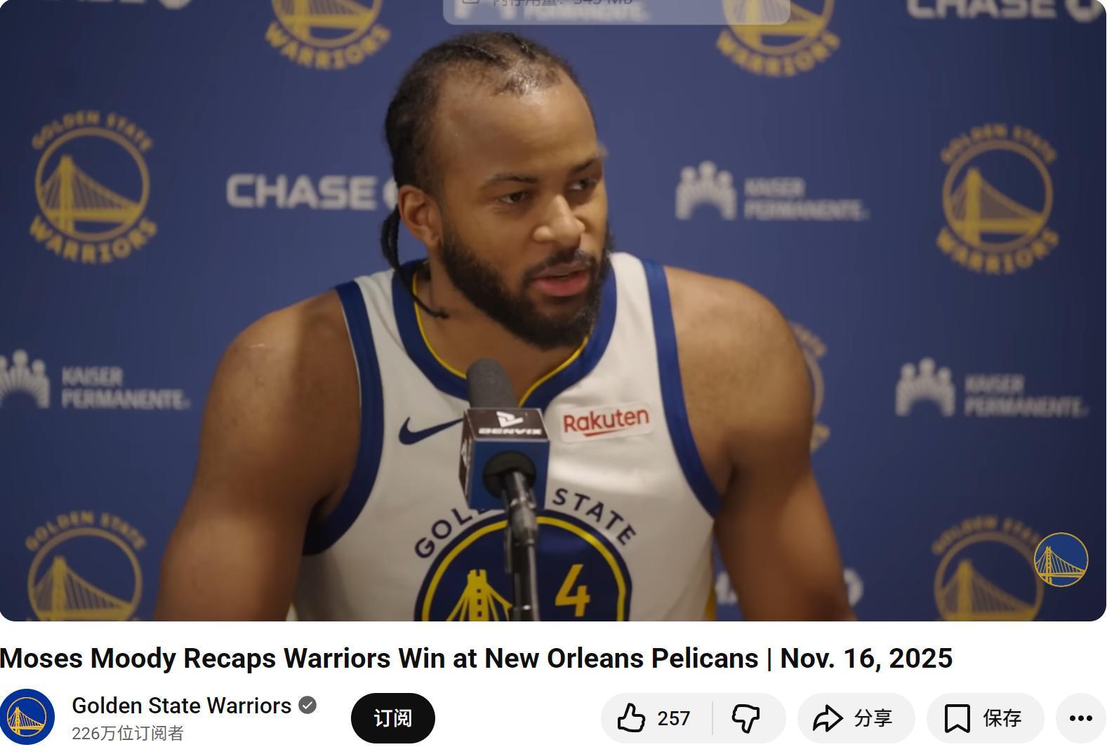 在穆迪的率领下,勇士队全场命中创赛季单场新高的24记三分,共有11人投进三分,其中库里仅命中1记,并且6中1的效率全队最差。