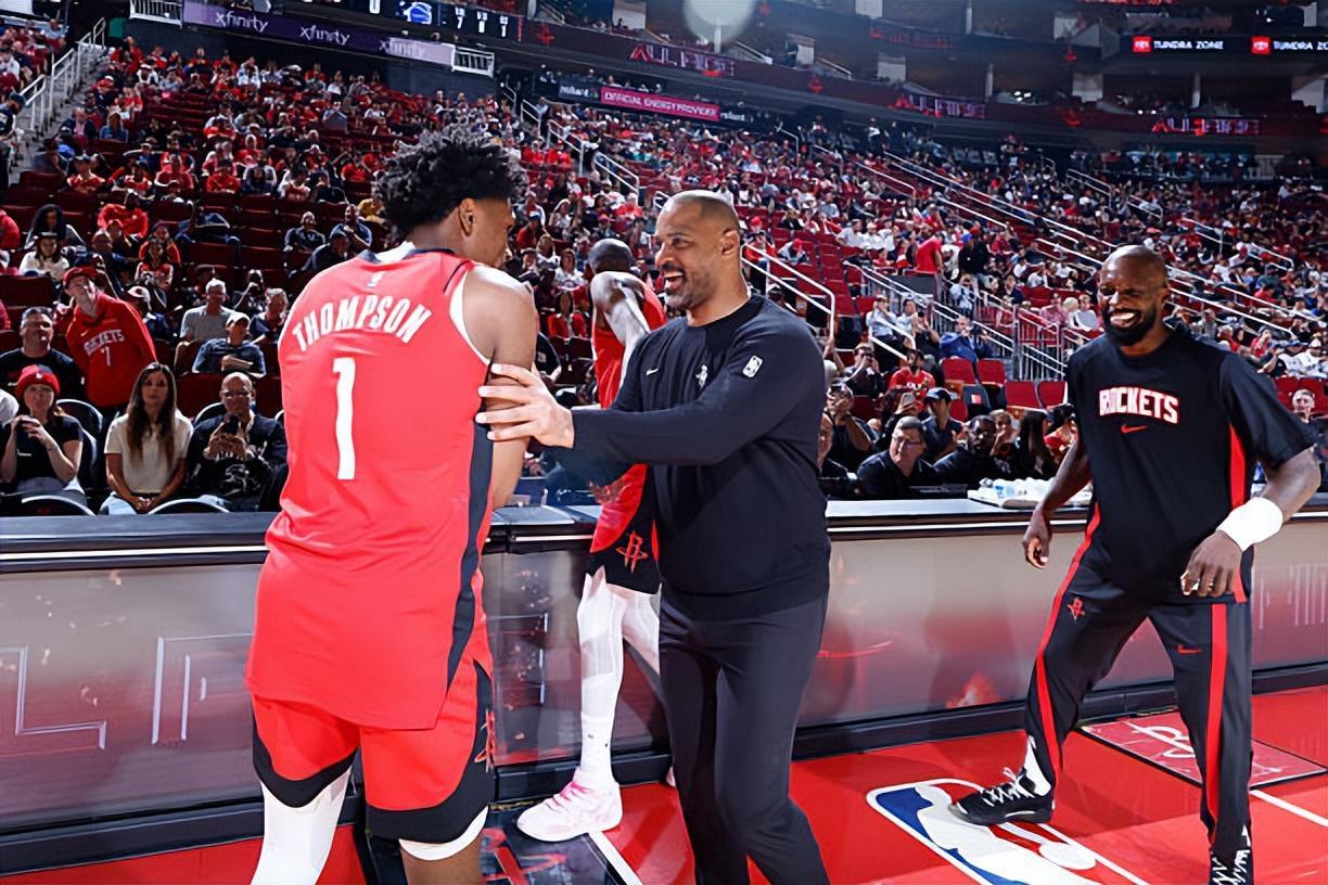 本场比赛中,火箭队的先发控卫阿门·汤普森(Amen Thompson)的表现却令人大跌眼镜,堪称灾难。阿门全场出战38分47秒,投篮13次仅命中4球,三分线外更是颗粒无收,仅靠罚球得到4分,最终得到12分10篮板2助攻的数据,同时还有1次失误和2次犯规,正负值为+7。在进攻端,阿门可谓是处处受限,对手对他的防守策略十分有效,成功堵住了他的空切路线,导致他的冲击力和终结能力无法得到充分发挥。而他在外线投篮方面的劣势,也在这场比赛中被进一步放大。