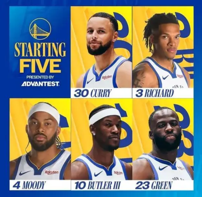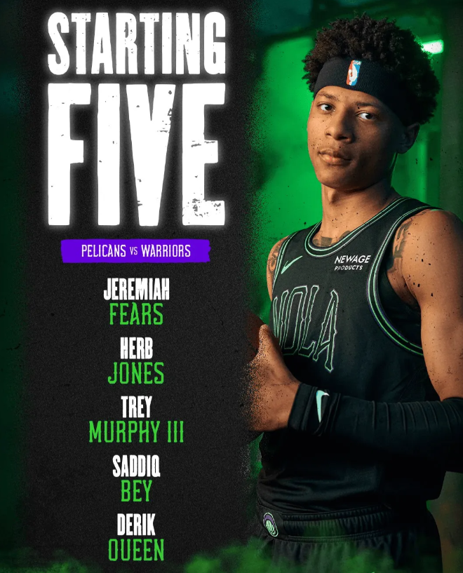 本场比赛,勇士队首发阵容为:斯蒂芬-库里、摩西-穆迪、威尔-理查德、吉米-巴特勒、德雷蒙德-格林;鹈鹕队首发阵容为:杰里迈亚-费尔斯、赫伯特-琼斯、特雷-墨菲、萨迪克-贝、德里克-奎因。