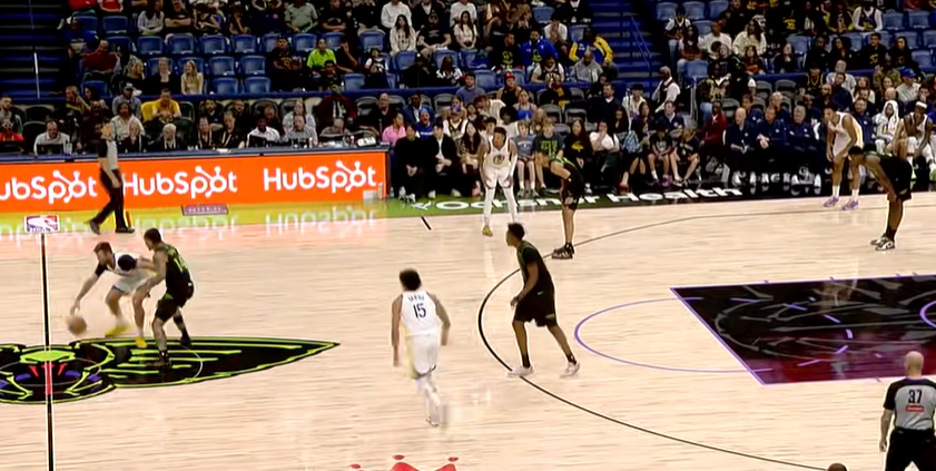 次节回来,奎因反击送出精准长传,墨菲高高跃起完成双手空接暴扣,费尔斯突破上篮再打成2+1,鹈鹕打出一波9-3追到个位数分差,勇士无奈喊出暂停。库里弧顶接球三分打铁,目前已经6中0,仅靠罚球拿到3分。墨菲无球空切,毫无阻碍杀到篮下双手暴扣完成终结。此时,格林与鹈鹕主场球迷发生争吵,裁判一旁无奈调解,球迷张开双手微笑回应。巴特勒前场完成抢断,一条龙反击压哨扣篮打进,半场战罢,勇士61-49依旧领先鹈鹕12分。