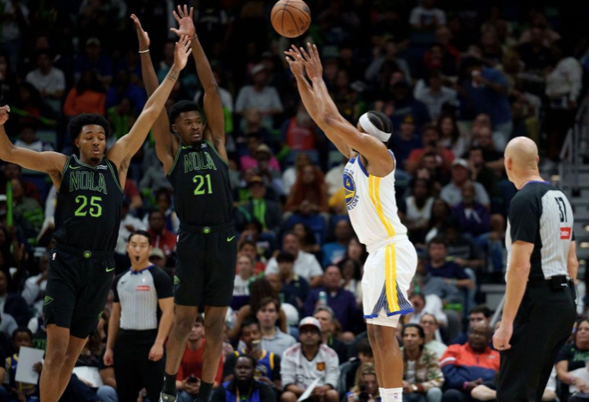 北京时间11月17日,NBA常规赛迎来一场焦点对决,金州勇士客场挑战新奥尔良鹈鹕。本场比赛勇士队凭借穆迪的爆发性表现,以124-106大胜对手,豪取三连胜。值得一提的是,当家球星库里全场11投仅2中,却依然见证球队轻松取胜,这场胜利充分展现了勇士深厚的阵容深度。