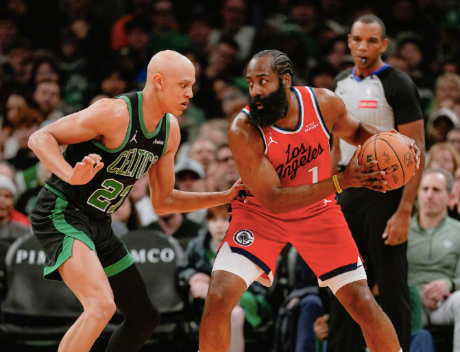 比赛开局凯尔特人迅速进入状态,塔图姆与布朗双核驱动,配合霍福德的内线牵制,首节便建立两位数领先。次节普理查德迎来爆发,单节命中4记三分球,半场战罢凯尔特人以63-49领先。尽管快船替补席在第二节后半段发起追分,但防守端始终无法限制对手的外线火力。