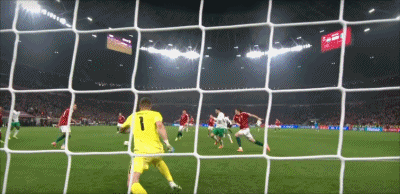 爱尔兰门将凯莱赫大脚开球,边翼卫斯凯尔斯头球摆渡,一道绿色闪电突然撕裂防线——23岁的帕罗特如鬼魅般插上,在匈牙利后卫与门将合围前将球捅入网窝!