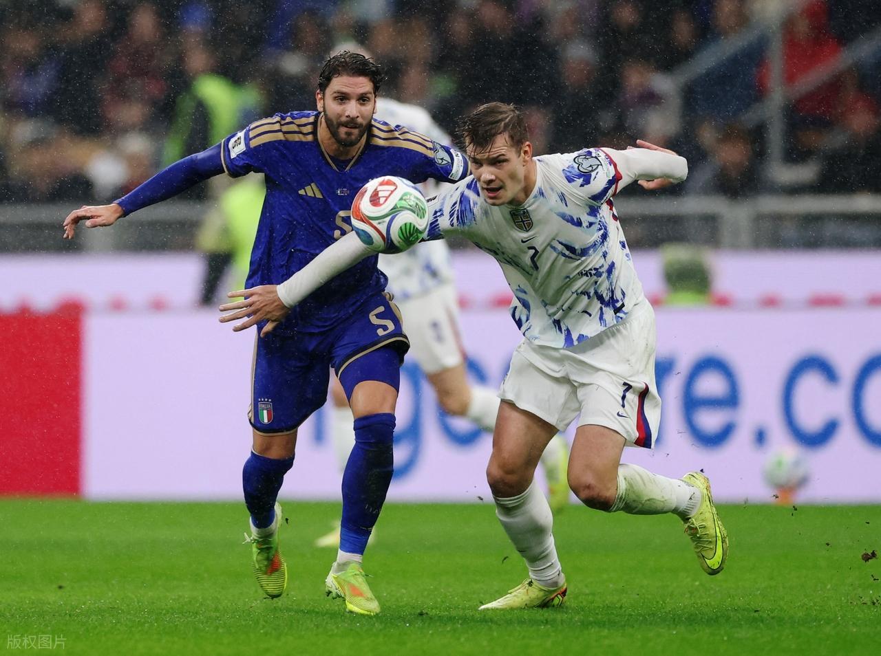 意大利则延续了上届世预赛的悲剧命运。2021年他们因净胜球劣势被瑞士反超无缘直接晋级,附加赛首轮爆冷被北马其顿淘汰。本届世预赛面对挪威,意大利不仅净胜球落后17球,最终连复仇都未能实现。根据规则,意大利将作为成绩最好的小组第二参加附加赛,但连续两届通过附加赛争夺世界杯资格,无疑给这支传统豪门蒙上阴影。