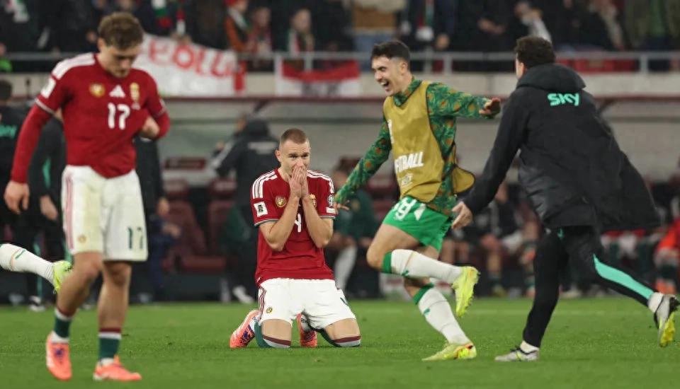 开场仅4分钟,匈牙利便取得梦幻开局。队长索博斯洛伊精准传中,卢卡奇头球破门,帮助主队1-0领先。然而,爱尔兰并未因此气馁,反而展现出顽强斗志。第28分钟,帕罗特接队友传中头槌建功,将比分扳平;第65分钟,他再度抓住机会推射破门,完成梅开二度;补时阶段第92分钟,帕罗特接边路传中凌空抽射上演帽子戏法,帮助爱尔兰3-2实现绝杀!终场哨响时,多名爱尔兰球员激动落泪,而匈牙利球员则难掩失落。