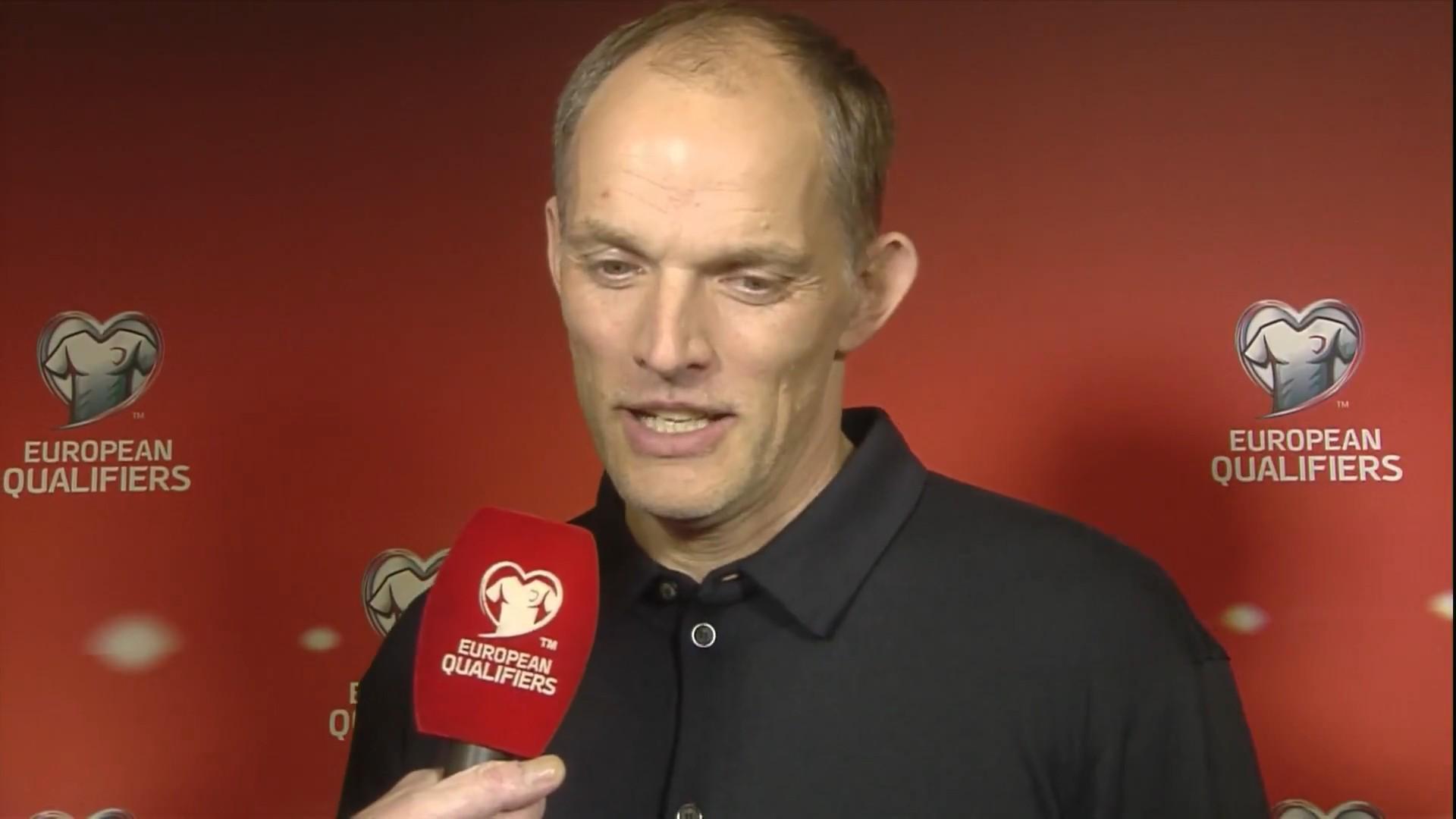 当被问及“八场比赛取得八场胜利,这场是否和任何一场胜利一样令人满意”时,图赫尔表示:“是的,是的。这是一场精彩的比赛,我很喜欢。对阵塞尔维亚的比赛非常艰难,今天的比赛同样充满挑战,我的情绪十分激动。我们完全掌控了比赛局面,不过中间突然又失去了一点控制,但我们克服了那些困难时刻,顶住了现场的气氛压力,并且通过定位球进球打开了比赛局面。比赛中有许多出色的表现,而且我们也有能力终结比赛,太棒了。每个人都很高兴,这是他们应得的。”