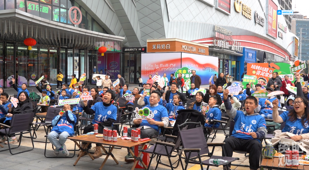 12个第二观赛区点位同步上演“全民狂欢”。万达广场巨型电子屏下,近百名球迷提前聚集,啤酒小吃区香气弥漫、人流涌动,足球主题装饰环绕四周。当资阳队发起进攻时,“资阳雄起”的呐喊声震耳欲聋,带孩子观赛的家长、高校学生、外地游客纷纷举起手机记录热血瞬间,相关短视频播放量突破50万次。