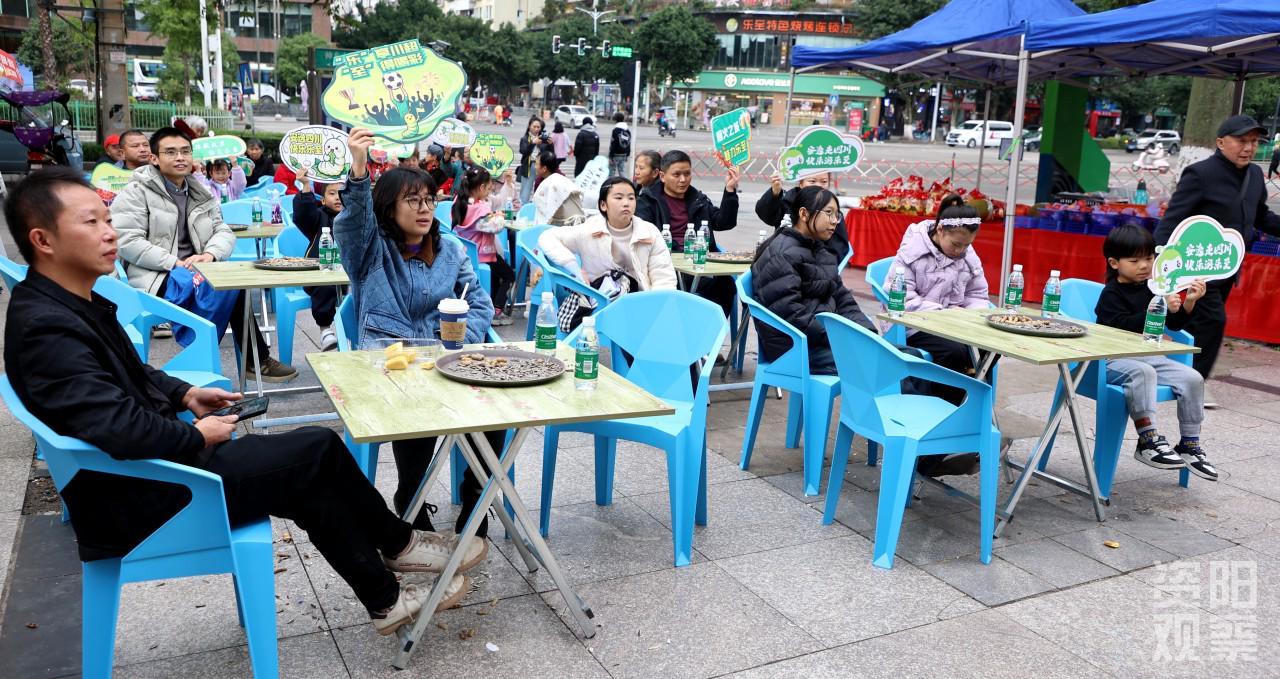 主赛场观赛区的“县区特色矩阵”成为球迷打卡必到地。安岳柠檬主题展区以汉服工作人员和十余款衍生产品吸引眼球,桑葚枸杞柠檬膏、柠檬红茶等试吃活动前排起长队,“微笑吃柠檬”“石刻知识问答”等互动游戏更是让现场笑声不断。完成挑战的球迷手持特色礼品与“南柠王妃”合影留念,社交媒体上相关话题热度持续攀升。