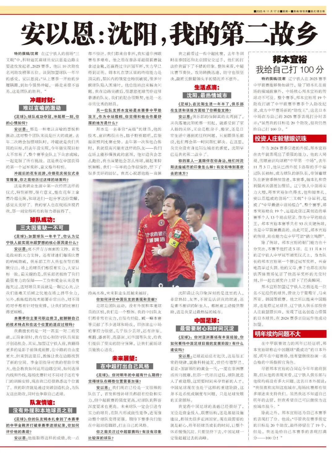 特约撰稿/沈君 在辽宁铁人的前场“三叉戟”中,科特迪瓦裔的中国台北球员安以恩是边路进攻的核心发起者。2025赛季,他以10次助攻位列助攻榜第五位,成为球队冲超的关键人物。谈及加盟球队一年半的感受,安以恩感慨道:“从赛季初的步履蹒跚到如今强势冲超,这一路走来充满挑战,但这是团队的胜利。”