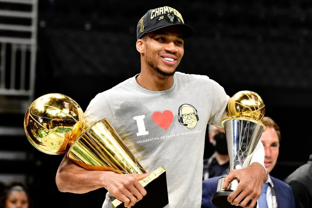 26岁前已斩获2019、2020两届常规赛MVP,2021年更实现'MVP+FMVP+总冠军'大满贯,成为同代球员中荣誉积累最快的巨星。