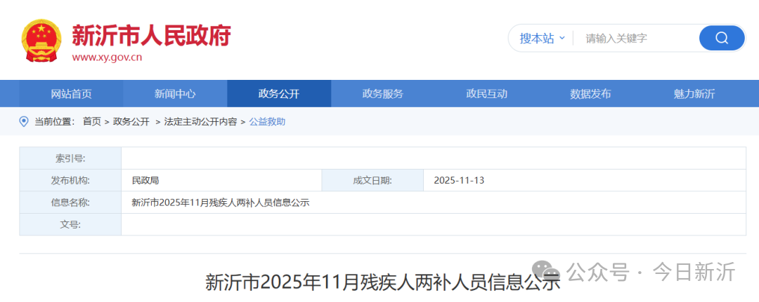 根据相关政策文件规定,现将全市2025年度11月份残疾人两项补贴人员信息公示如下,欢迎广大群众和社会监督,咨询举报电话:69791726 。
