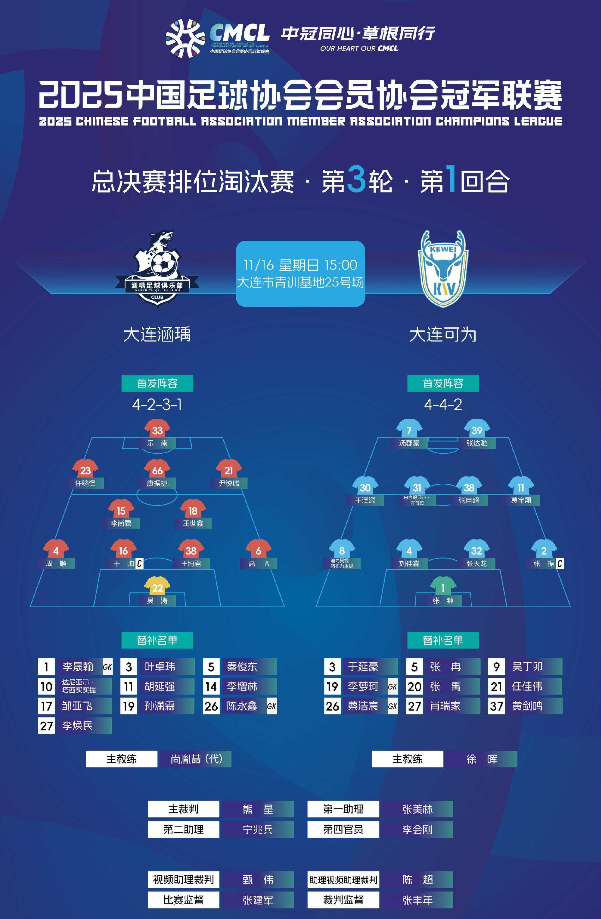 根据赛程,双方将于11月23日15:00转战大连普湾体育场展开第二回合较量。次回合,回到主场的大连可为只需打平或以不超过1-2的比分输球,即可淘汰对手,获得2025中冠联赛季军并拿到2026赛季中乙职业联赛入场券。若大连涵瑀无法逆转比分,将无缘直升中乙,但获得第4名的他们仍可通过与2025赛季U21联赛冠军的附加赛争取晋级机会。