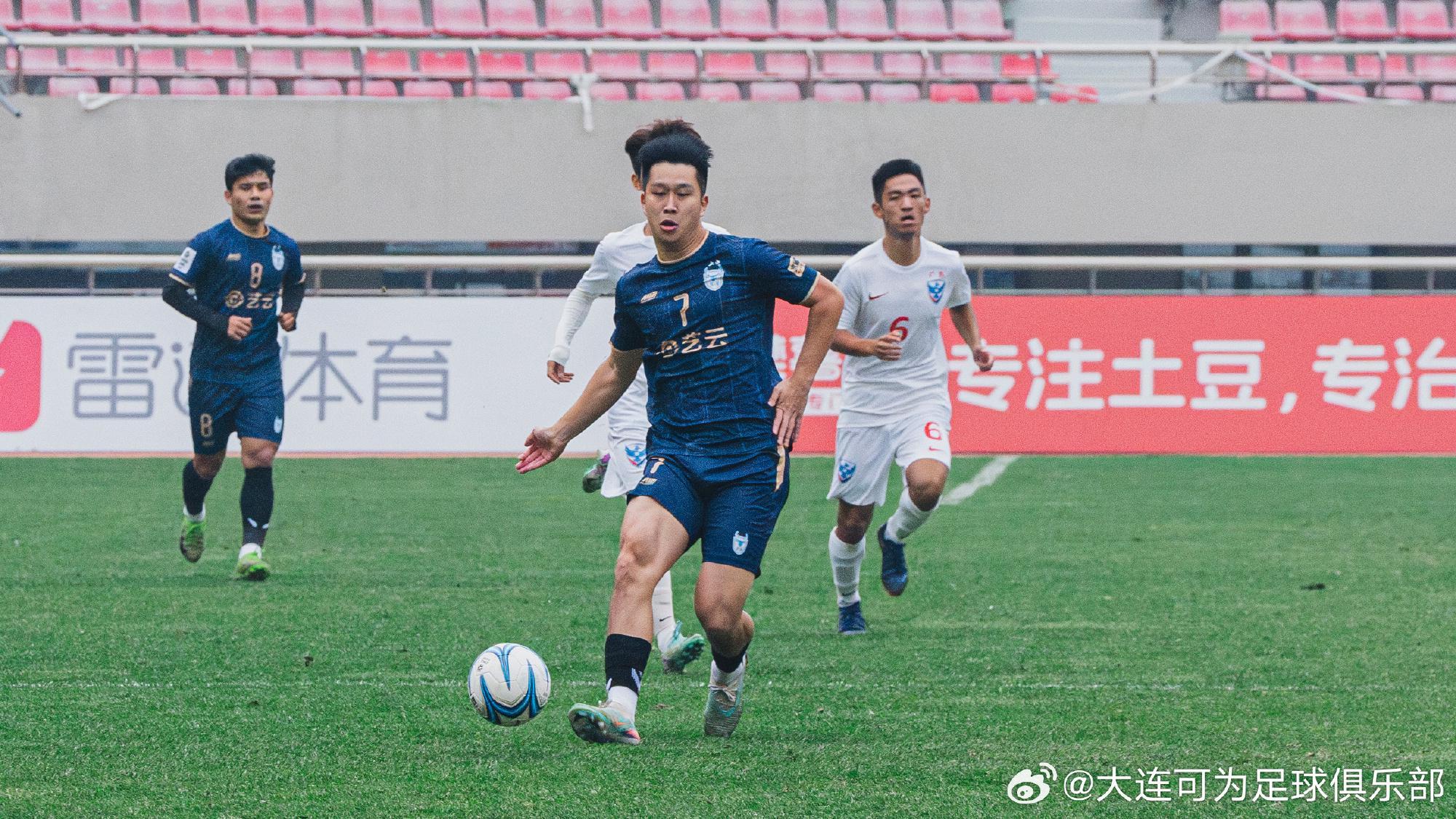 下半场第65分钟,大连可为抓住对方防守漏洞,汤郡豪抢在防守球员前头球破门,将比分改写为2-0。随后,于泽源再入一球,但经视频裁判认定越位在先,进球无效。第83分钟,大连涵瑀利用任意球机会,队长于帅在禁区前沿大力施射,球击中横梁弹入网窝,比分变为1-2。此后比分未再改写,大连可为在首回合较量中先下一城。