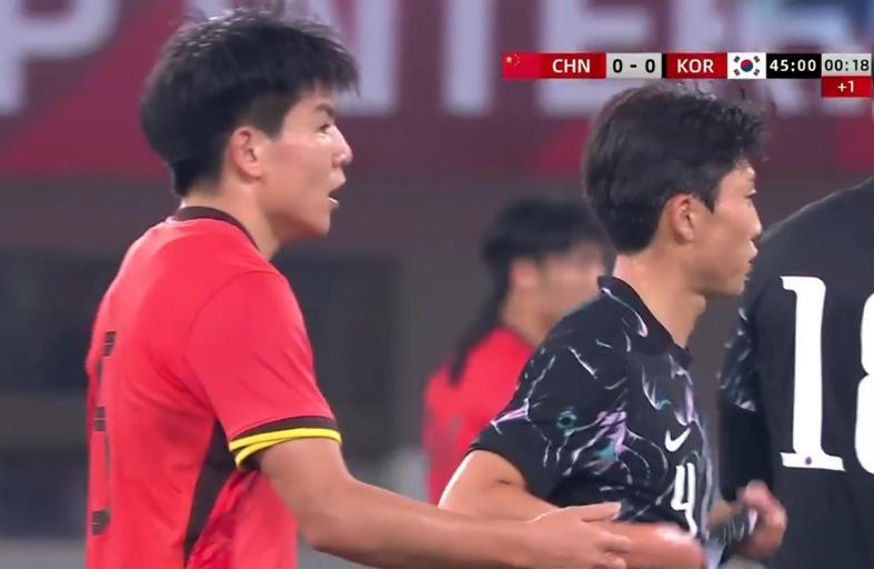 上半场双方陷入胶着状态,U22国足虽然控球率不占优势,却创造了更多威胁进攻。第7分钟,王博豪右路强突传中,险些助队友首开纪录。韩国队在上半场仅完成1次射门,U22国足的防守明显优于上一场对阵越南时的表现。补时阶段,徐彬后场回传失误,金容鹤断球后单刀赴会,但趟球过大,李昊及时出击封住角度,化解了这次险情。