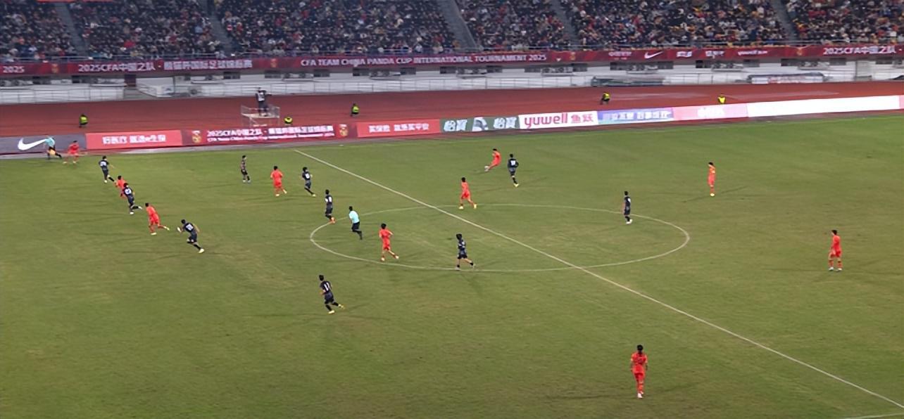 上半场,U22国足进攻积极,主帅安东尼奥将留洋小将王博豪从后腰位置调整到前场,这一调整收到奇效。王博豪凭借速度优势完成超车突破,随后送出精准传中。前锋李镇全门前抢点,制造出威胁,可惜未能转化为进球。半场结束前,中国队出现低级失误,险些被对手破门。