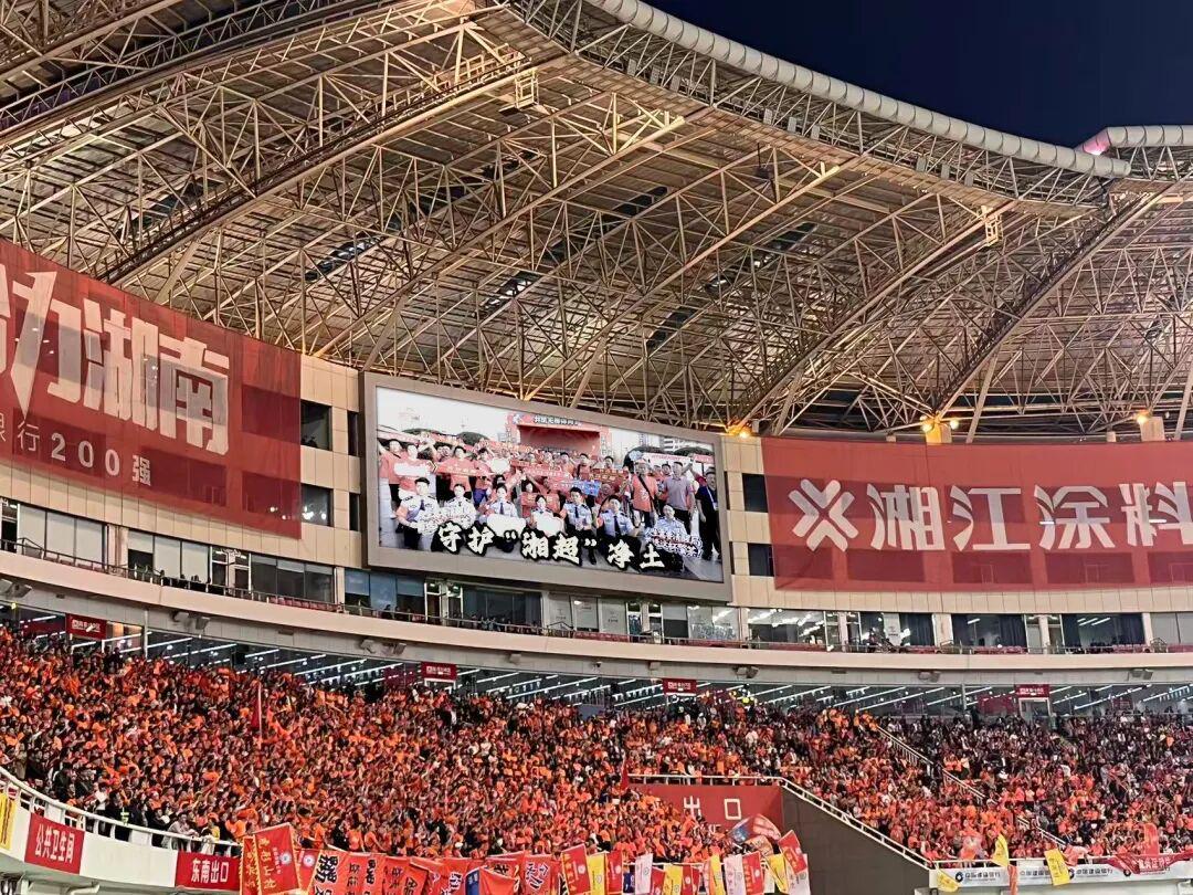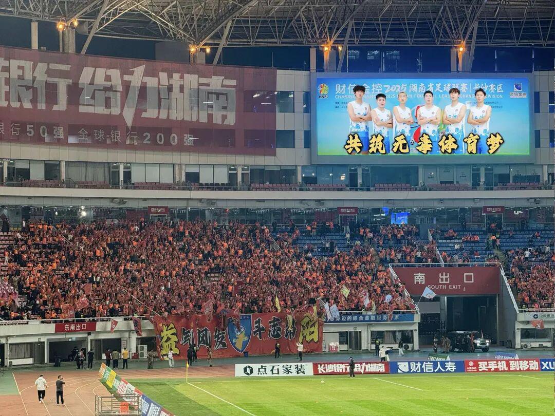 随着现场观众的热切注视,大型电子屏亮起主题鲜明的禁毒宣传片。视频以“净土”与“梦想”为主线,镜头在球员们挥洒汗水的拼搏瞬间与球迷们纯粹热烈的呐喊声中切换,传递出“拒绝毒品、守护健康”的坚定信念。片中“守护‘湘超’净土,共筑无毒体育梦”的铿锵呼吁,直击人心,看台上响起阵阵掌声,许多观众自发为这一创新宣传形式点赞。